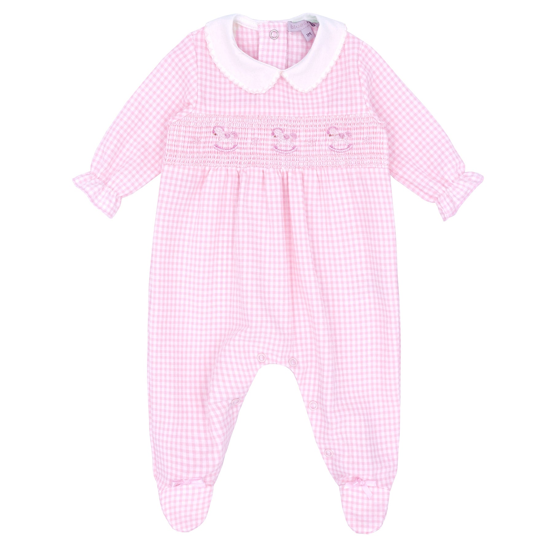 Blues Baby Girls Seersucker Sleeper With Jersey Lining & Rocking Horse Embroidery - BB1042