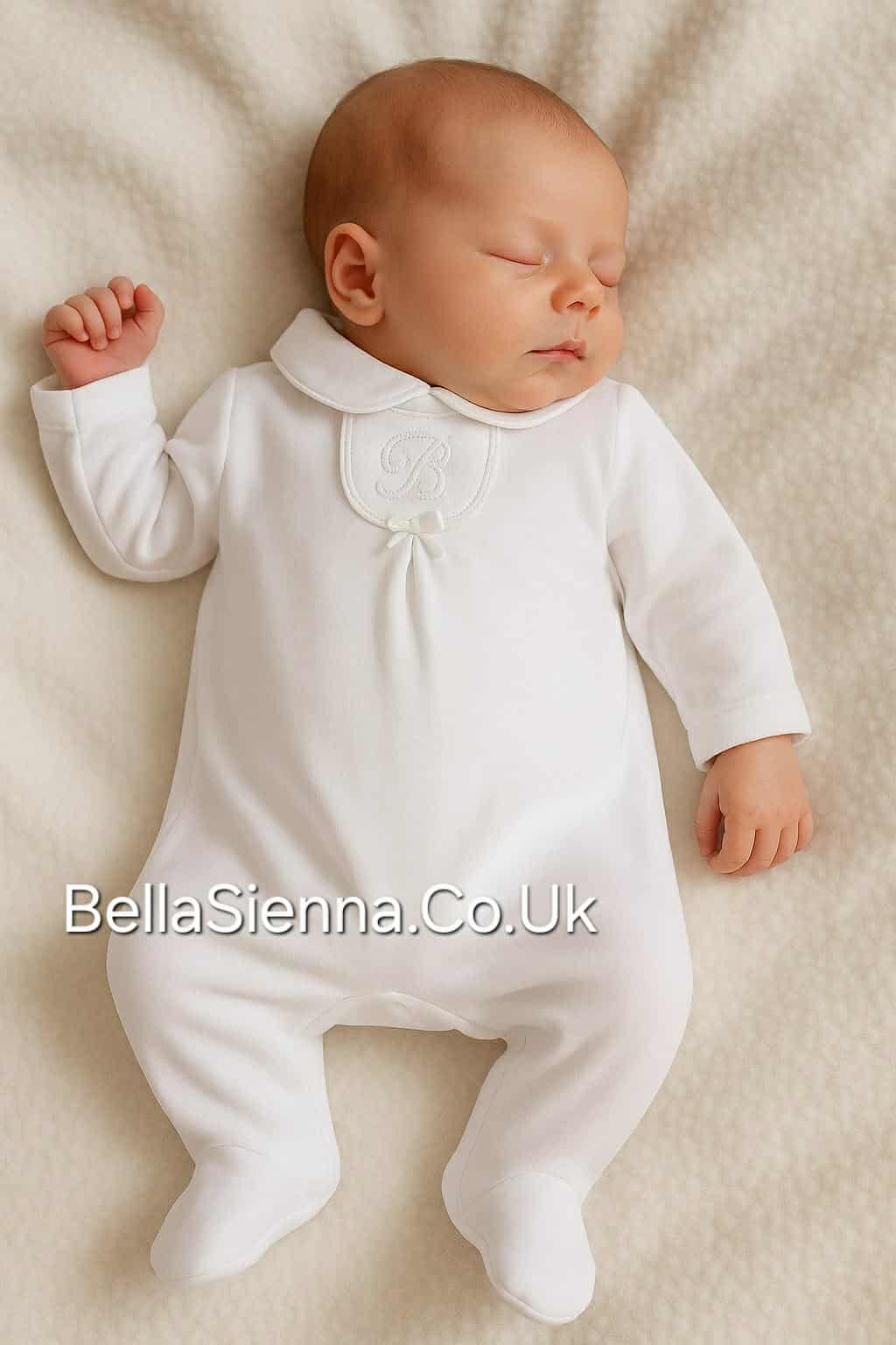 Blues Baby Unisex Velour Sleeper/Babygrow is a timeless classic. Made with 100% cotton velour, this sleeper is luxuriously soft and perfect for keeping your baby warm and comfortable all night. With a stylish white design, it is suitable for both boys and girls.