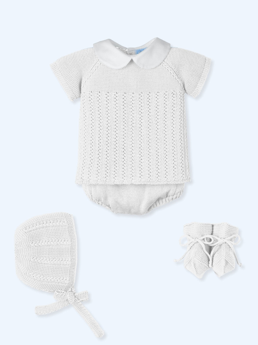 Sarah Louise Baby Boys White Knitted Two Piece Outfit