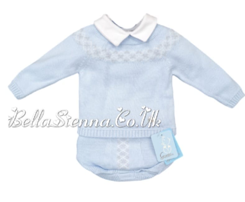 Emile et Rose Shorts & Knitted Top - Blue & White Milo