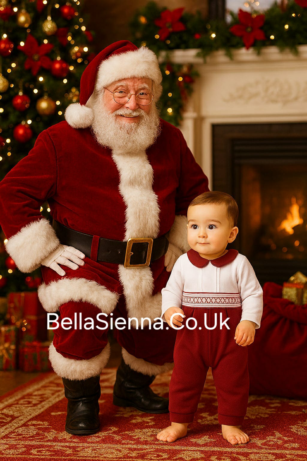 Boys Red & White Smocked Romper - AM0004