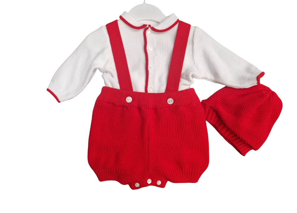 Dani By Sarah Louise Baby Boys Three Piece Knitted Red & White Oufit Including Hat - D09554