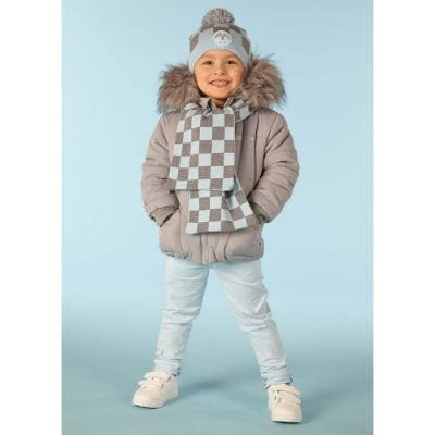 Mitch & Son Elvis Blue & Grey Racing Style Check Pom Pom Hat - MS22418