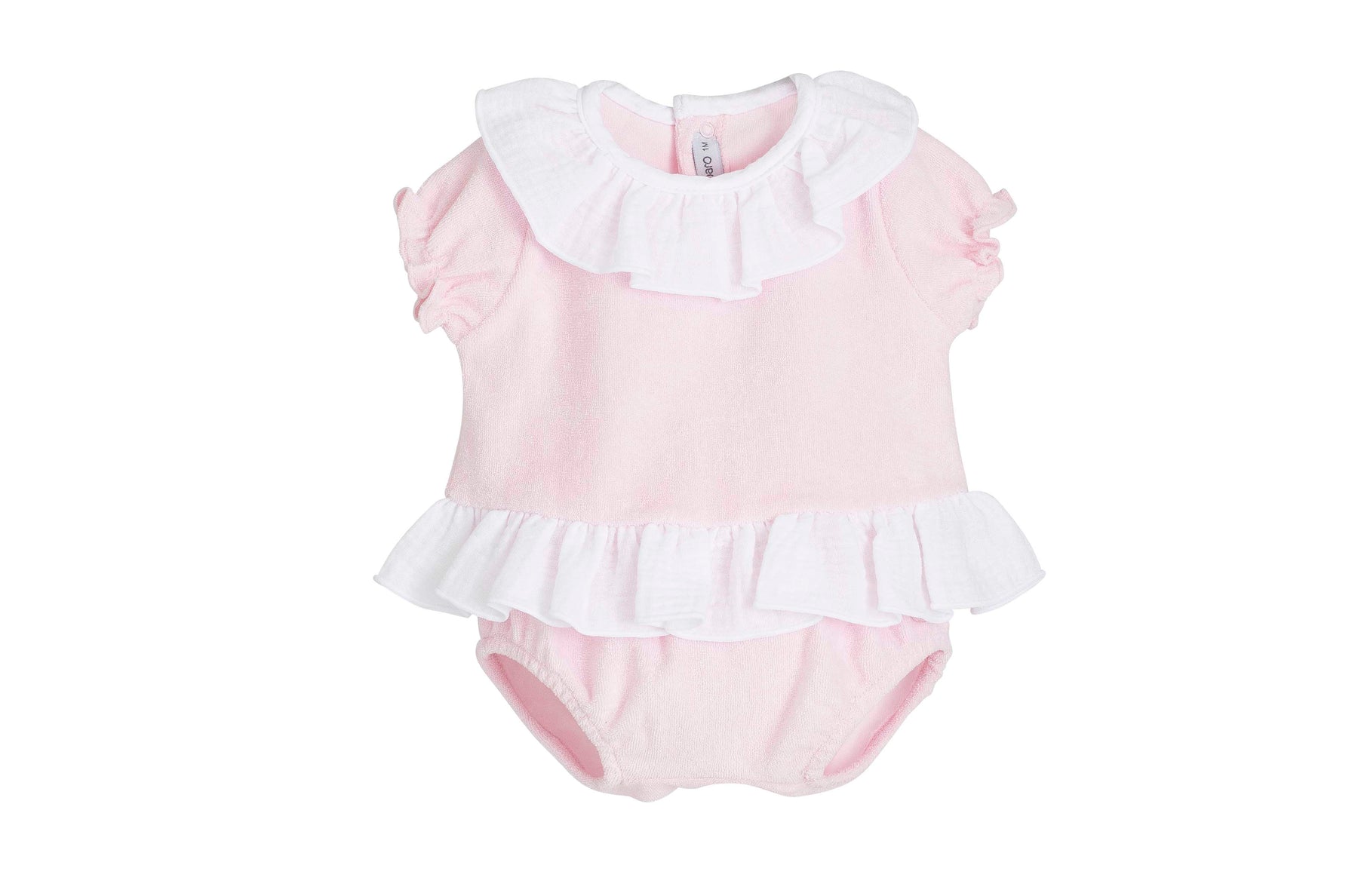 Calamaro Baby Pink Towelling Two Piece Jam Pants Set With Split Back & Bow Jam Pants- 11281