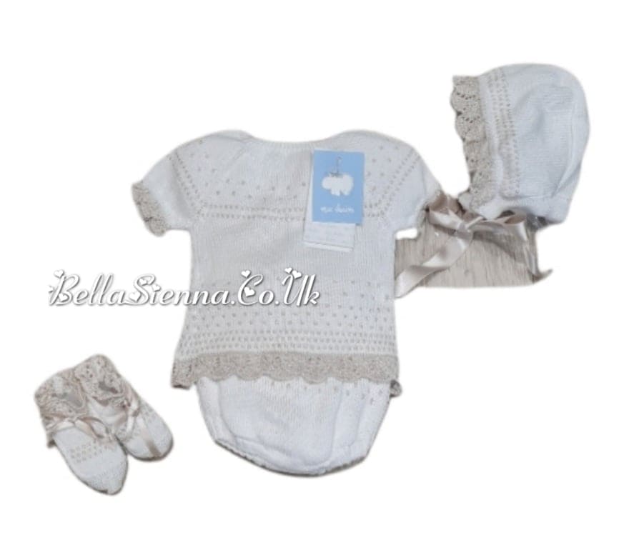 Mac ilusion Newborn Baby Girls Four Piece Fine Knitted Outfit White & Beige 7230X