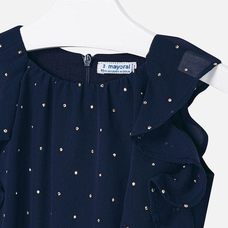 This Mayoral Sleeveless Playsuit will make your little girl look stunning. Crafted with an elasticated waist from lush navy blue fabric, it has a comfortable fit that still retains its classic shape.