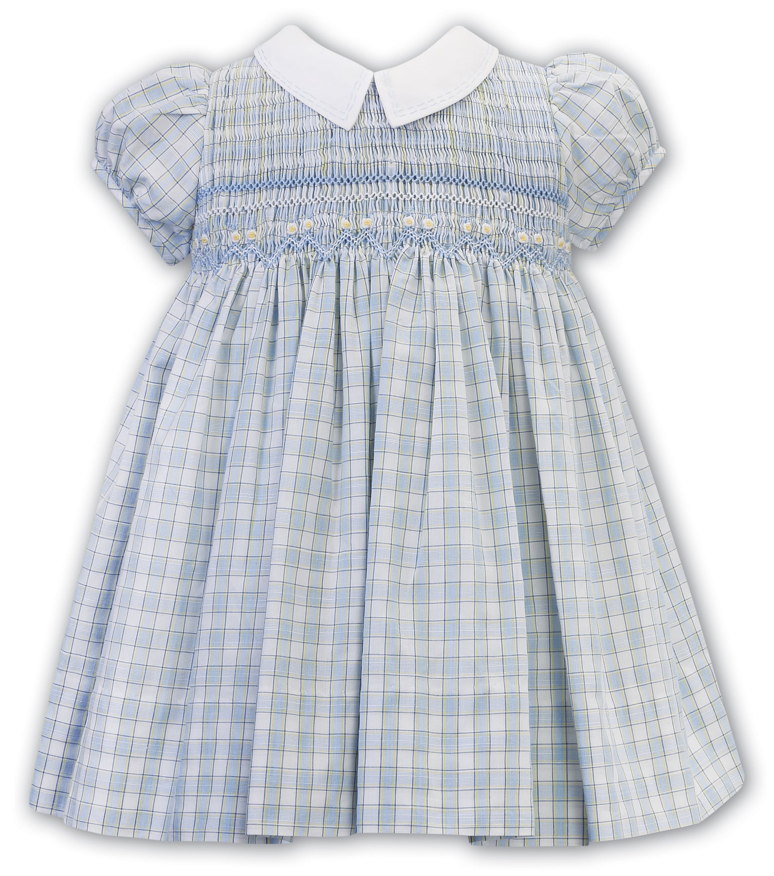 Sarah Louise Blue/Lemon/White Checked Smocked Dress - 012655