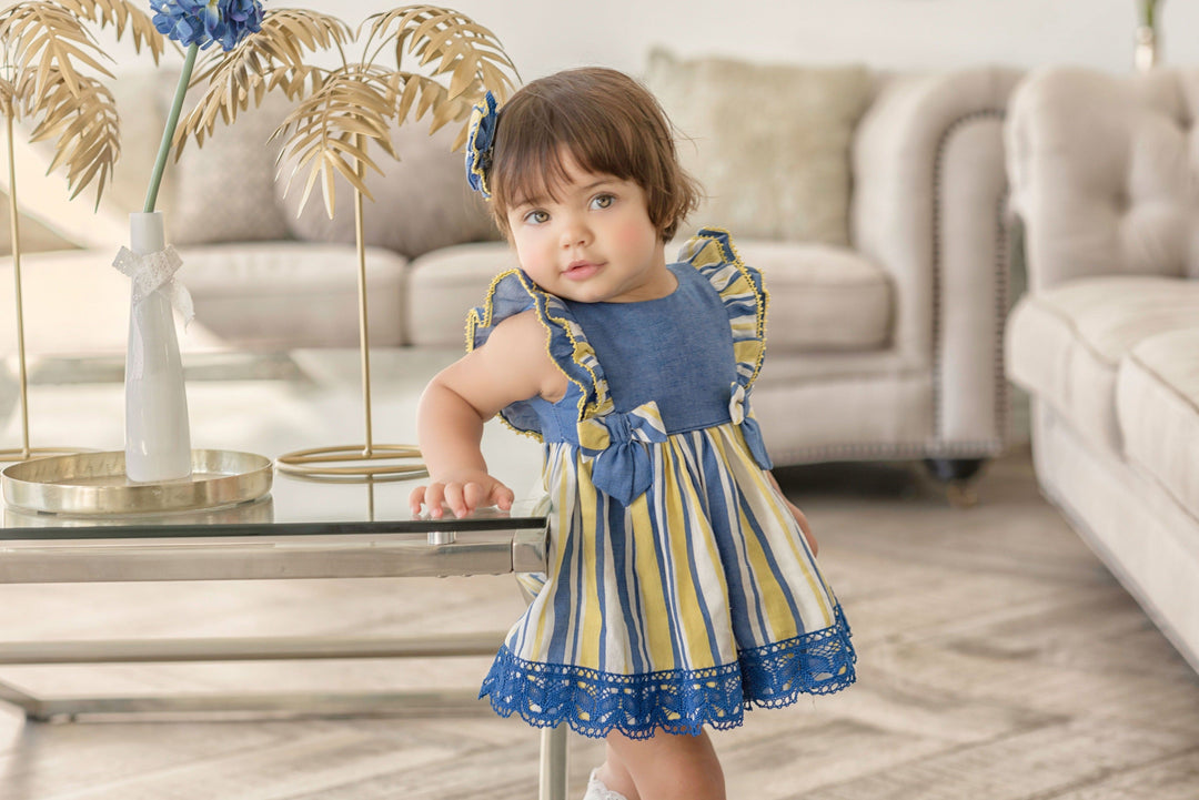 Miranda Blue Yellow Striped Dress Set For Baby Girls 0150