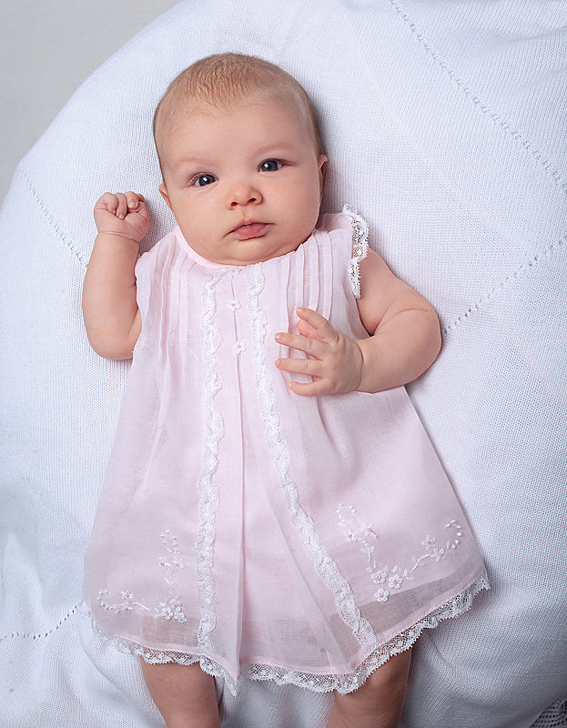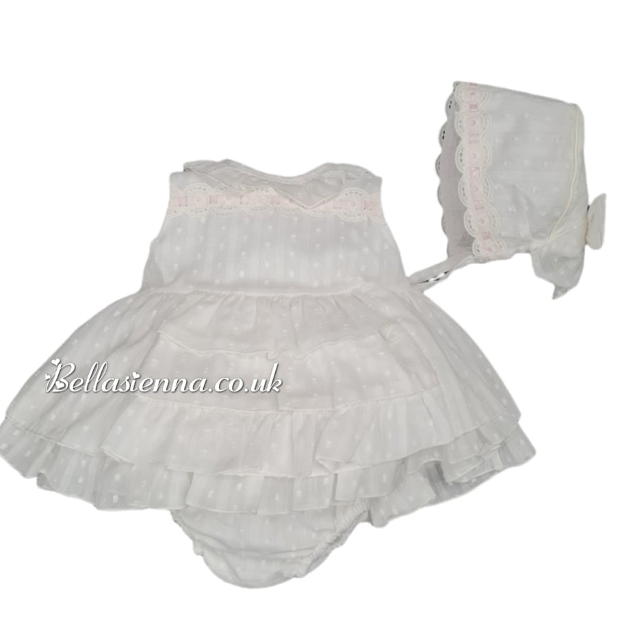 Dbb Collection Ivory & Pink Dress, Pants & Bonnet Set - 11701