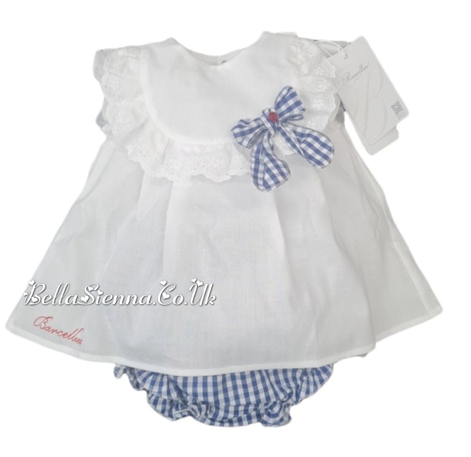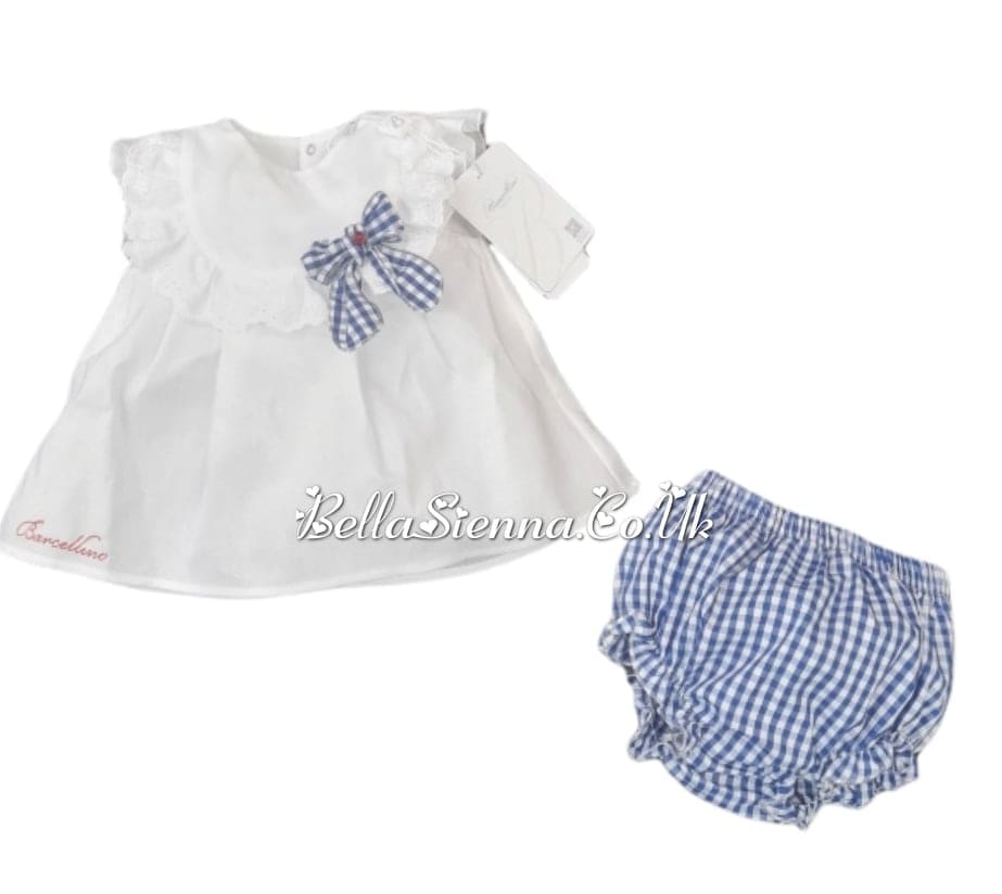 Barcellino White & Navy Check Dress & Pants Set - 9648