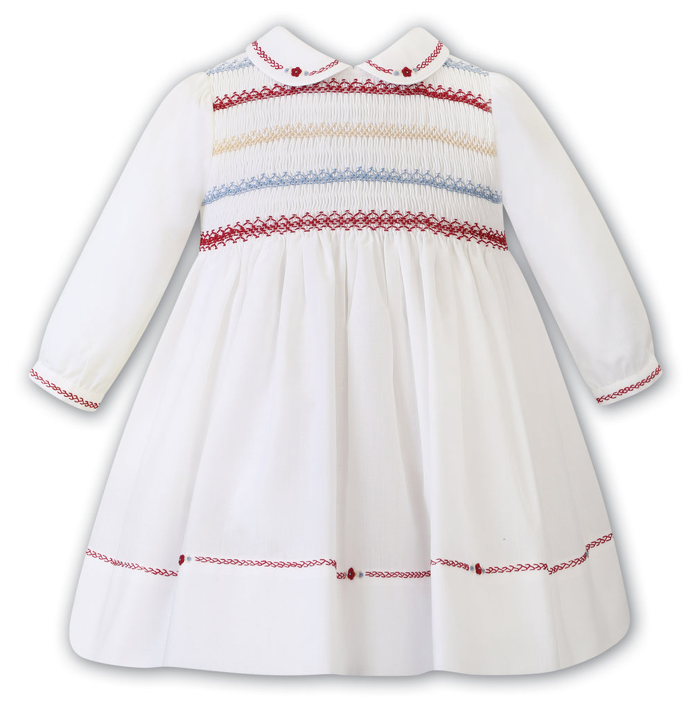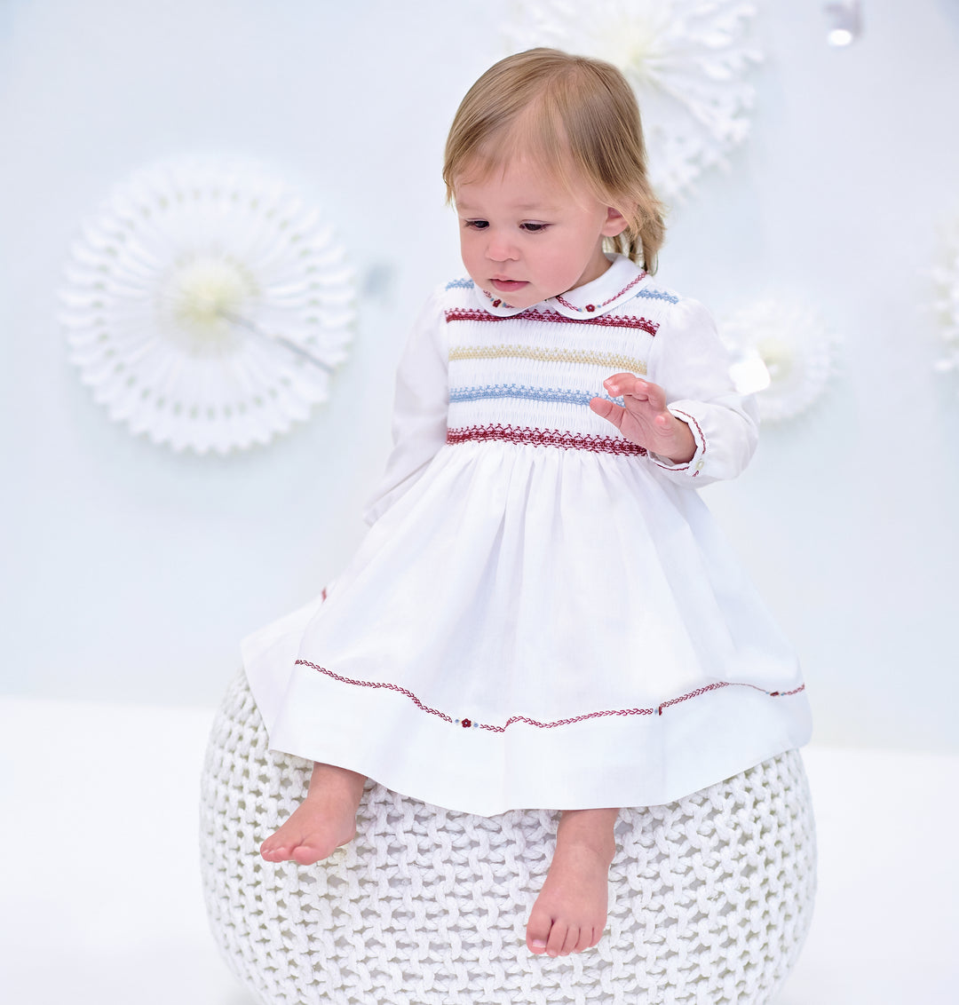 Pretty Originals Baby Girls Red/Cream Dress With Smocking MT00992