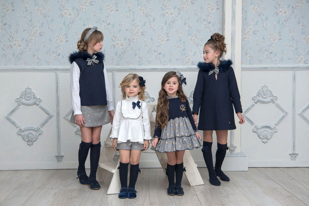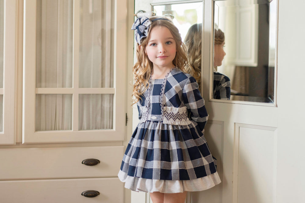 Mayoral *Navy & Beige Tartan Dress With Bow Winter 4914