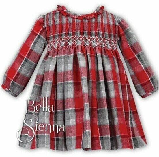 Sarah Louise Baby Girls Winter Red Checked Dress 011733