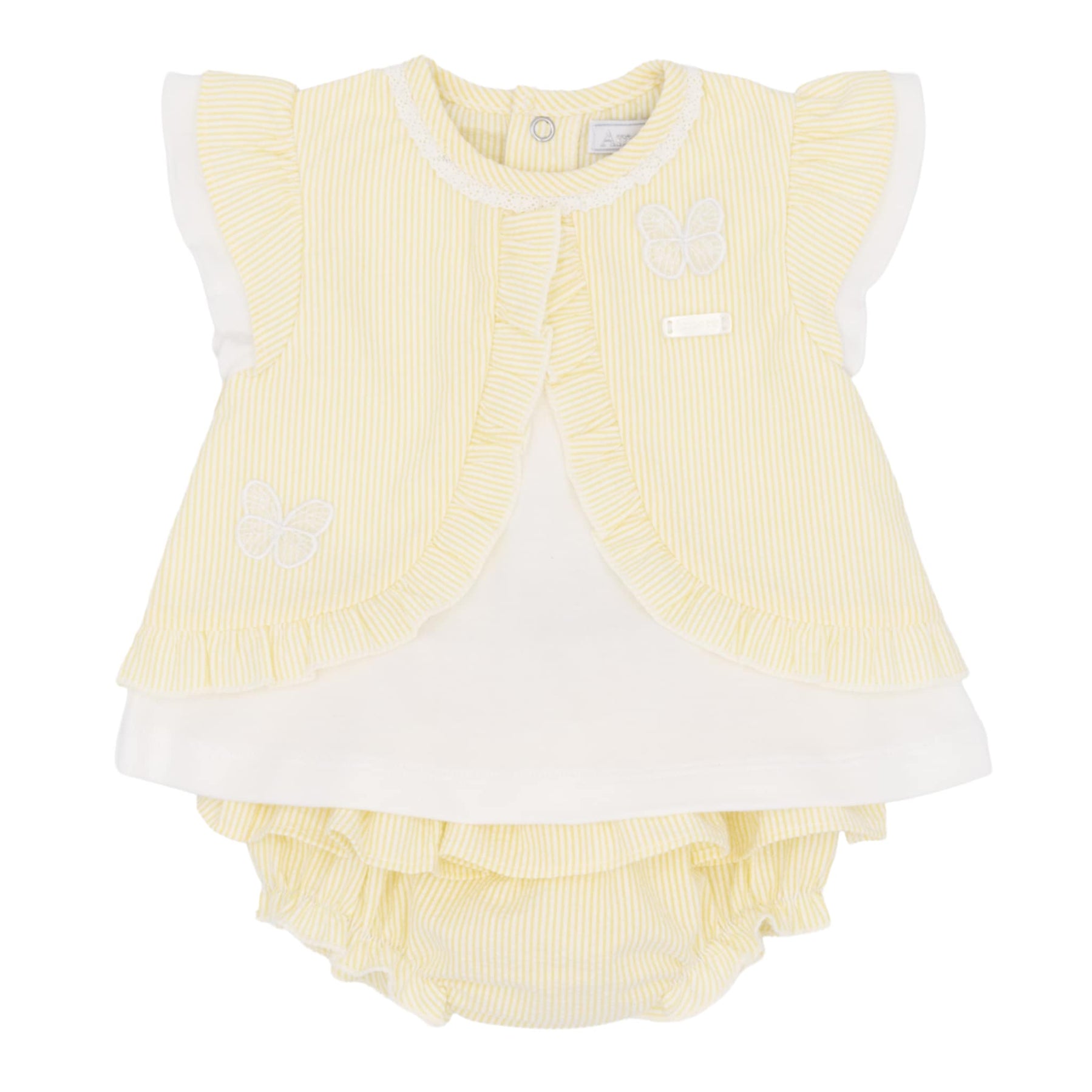 Amore Girls Lemon & White Butterfly Jam Pants Set - AM0075