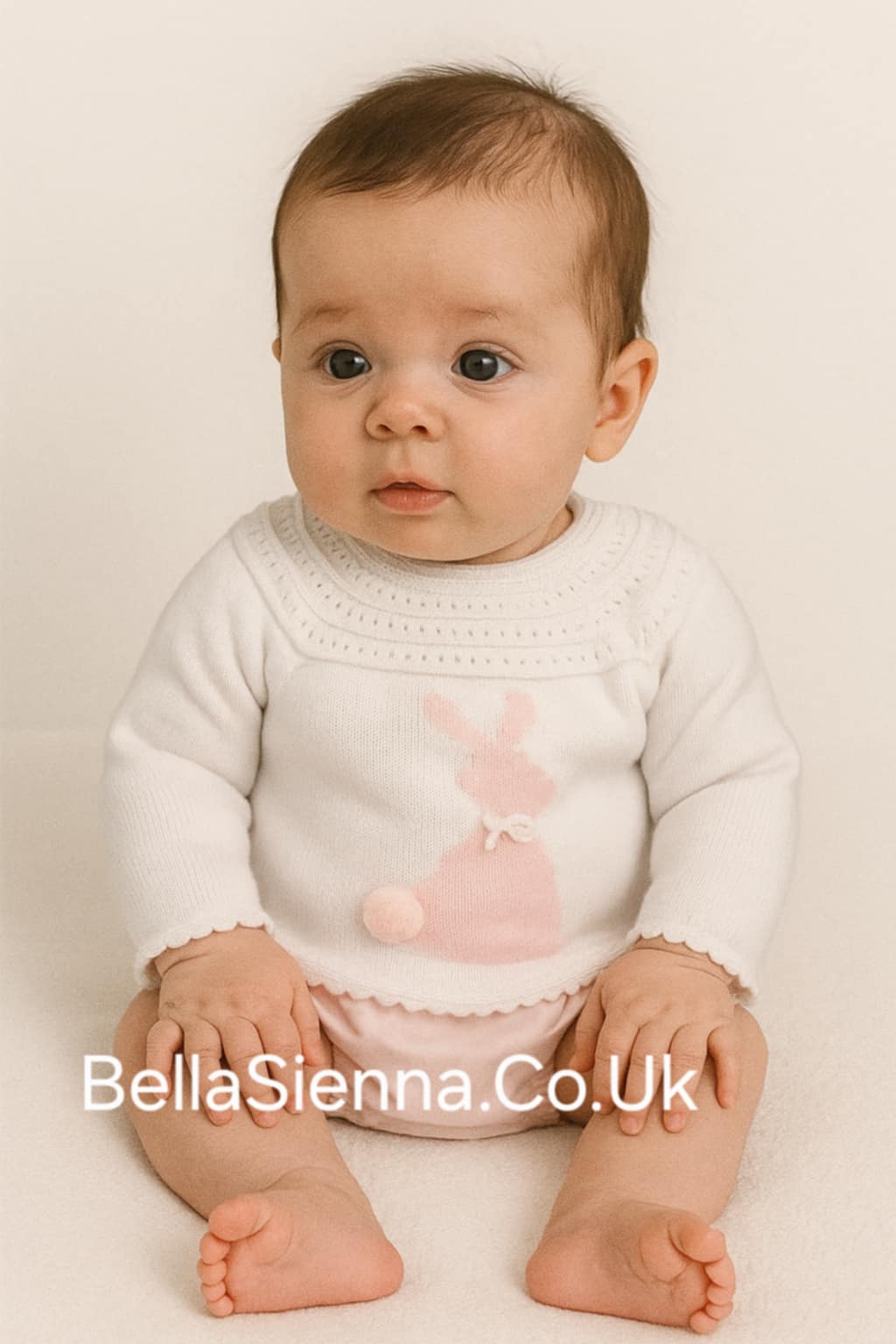 Granlei White & Baby Pink Bunny Rabbit Jumper & Jam Pants Set - 1HH - Easter