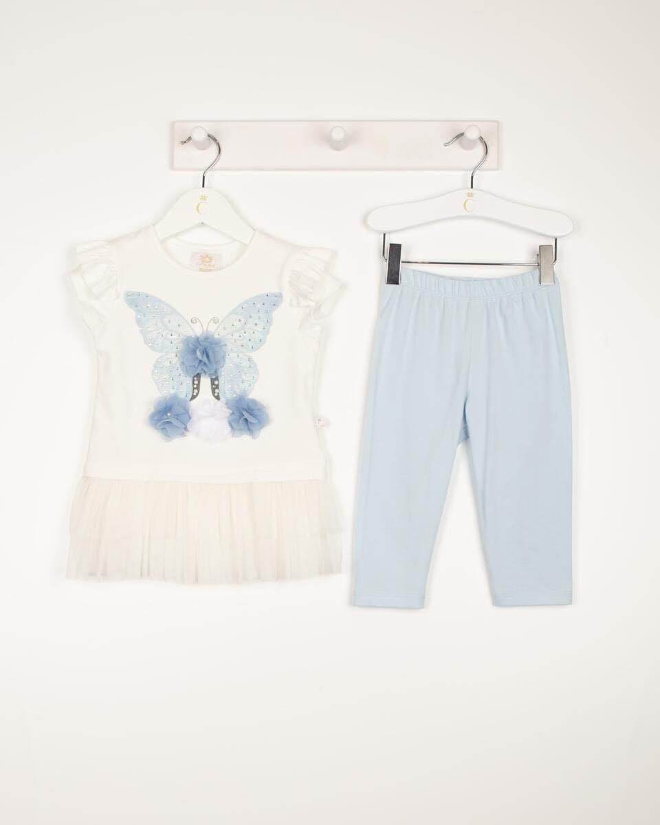 Blue & White Butterfly Legging Set offers beautiful details, such as diamantes and pearls to complete any look. Perfect for adding a touch of style to any formal or casual outfit. This unique design.