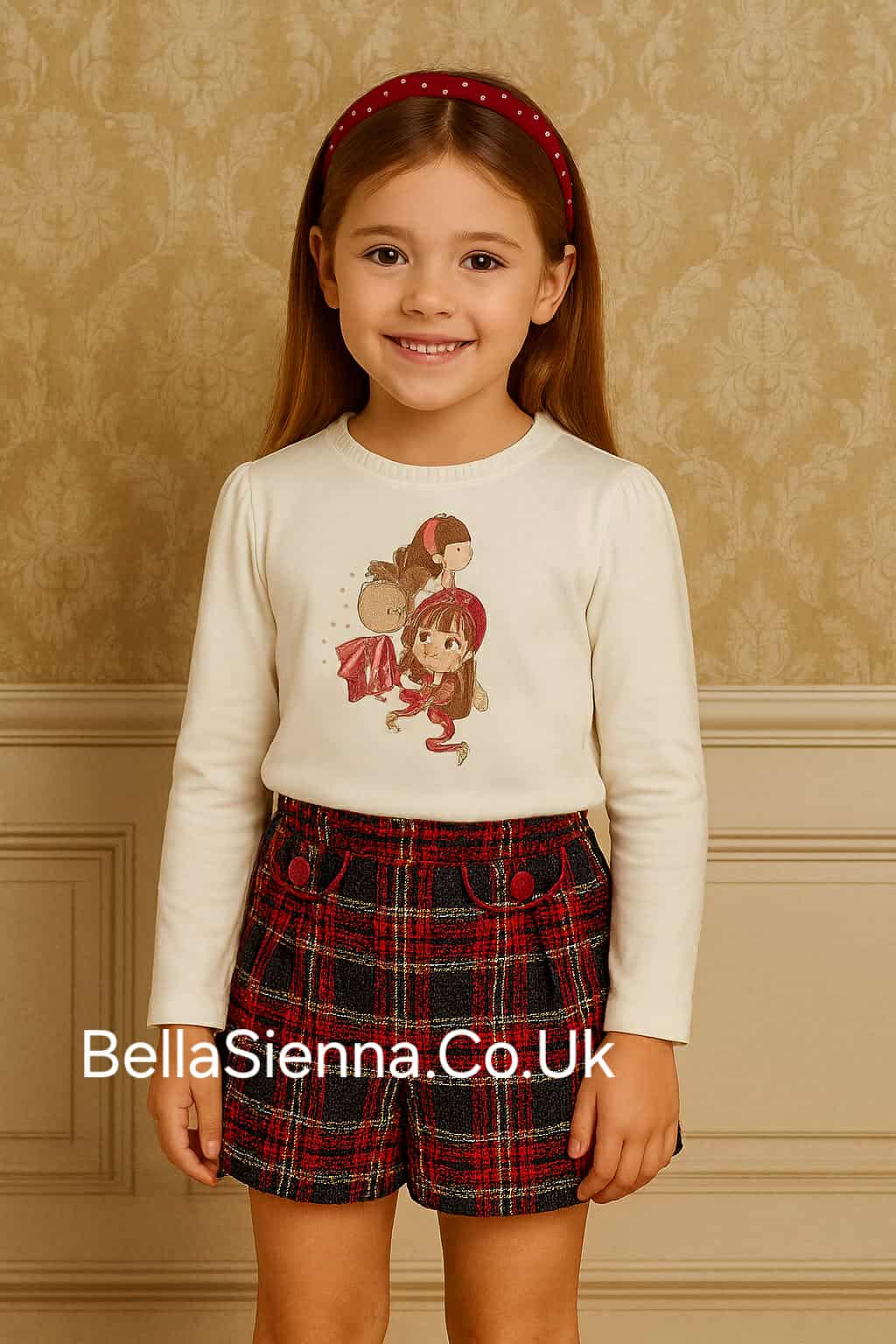 Mayoral Girls Long Sleeved Top & Tweed Look Checked Shorts - 4065 & 4217