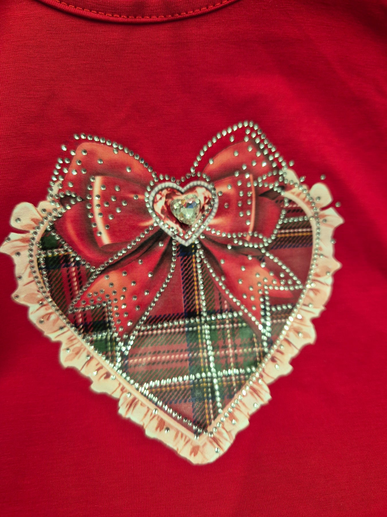 Red Sparkle "Tartan Heart" Skirt & Top Set - YG-21
