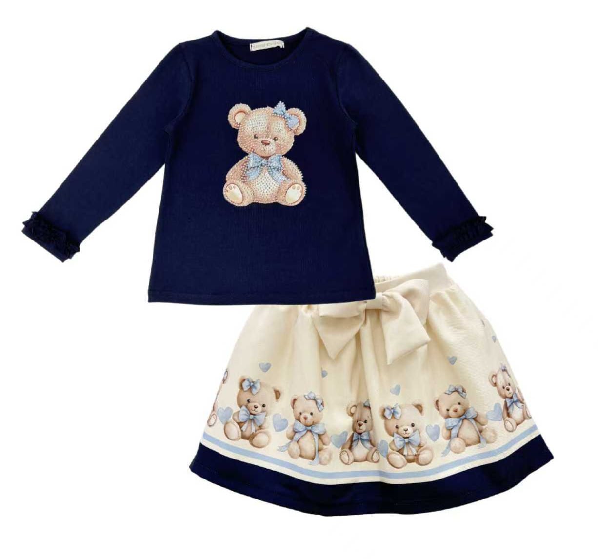 Navy & Cream Sparkle "Big Teddy Bear" Skirt & Top Set - YG-22