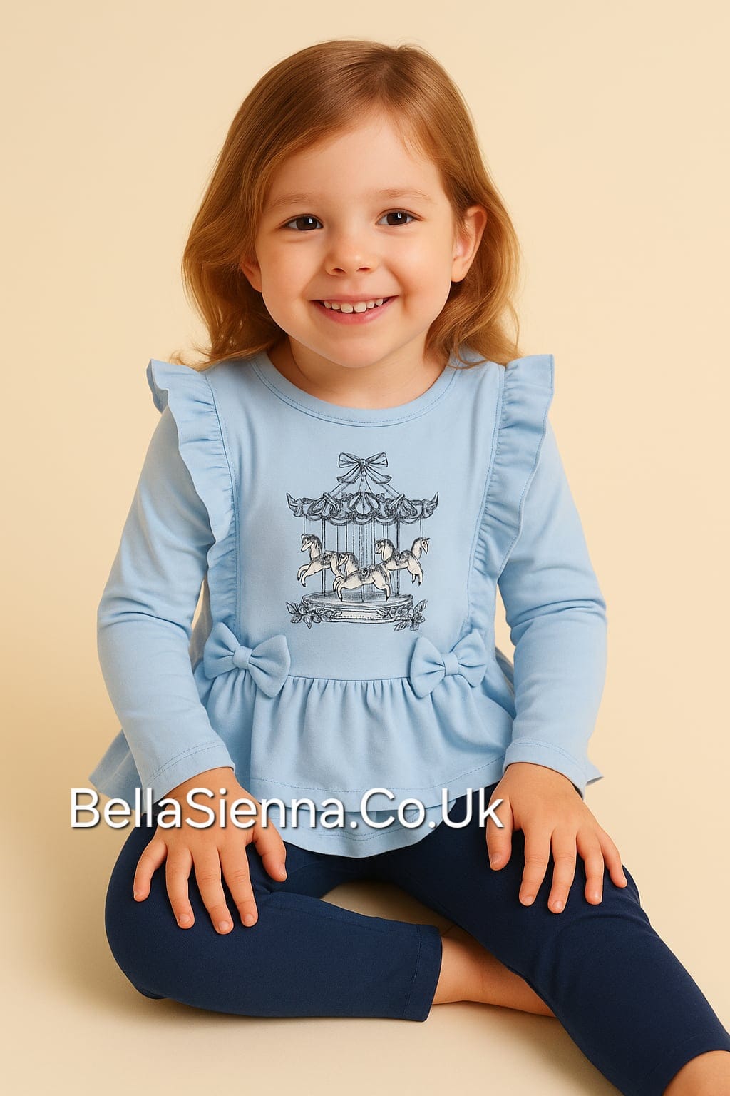 Blue & Navy Sparkle "Carousel" Anglaise Leggings Set - YG27