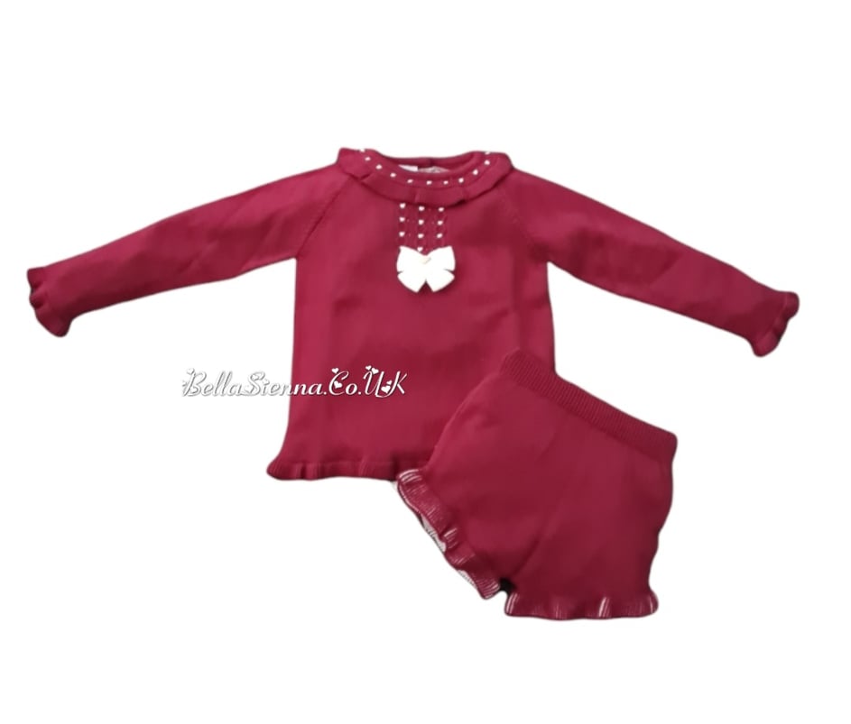Granlei Burgundy Knitted Shorts Set Outfit - 2100