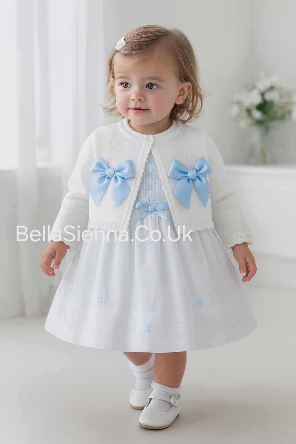 Pretty Originals White And Blue Bow Cardigan
