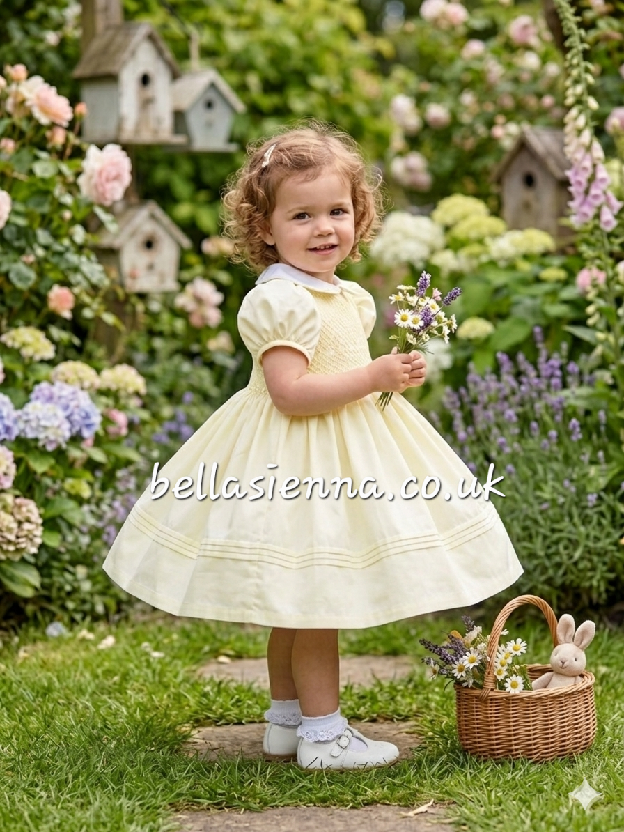 Sarah Louise Lemon & White Hand Smocked Dress - Heritage Collection - C7501