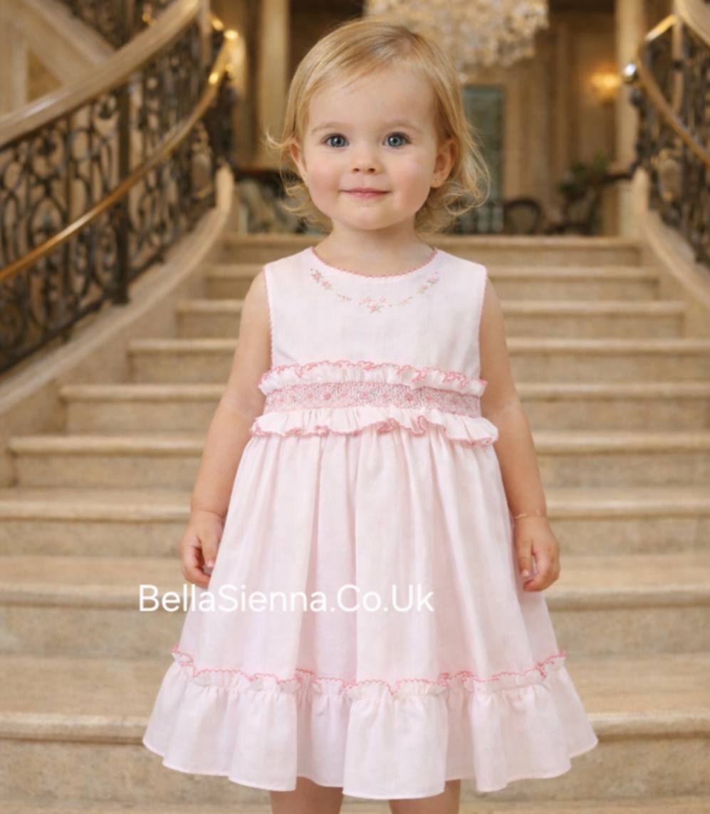 Sarah Louise Pink Smocked Sleeveless Dress - 012626
