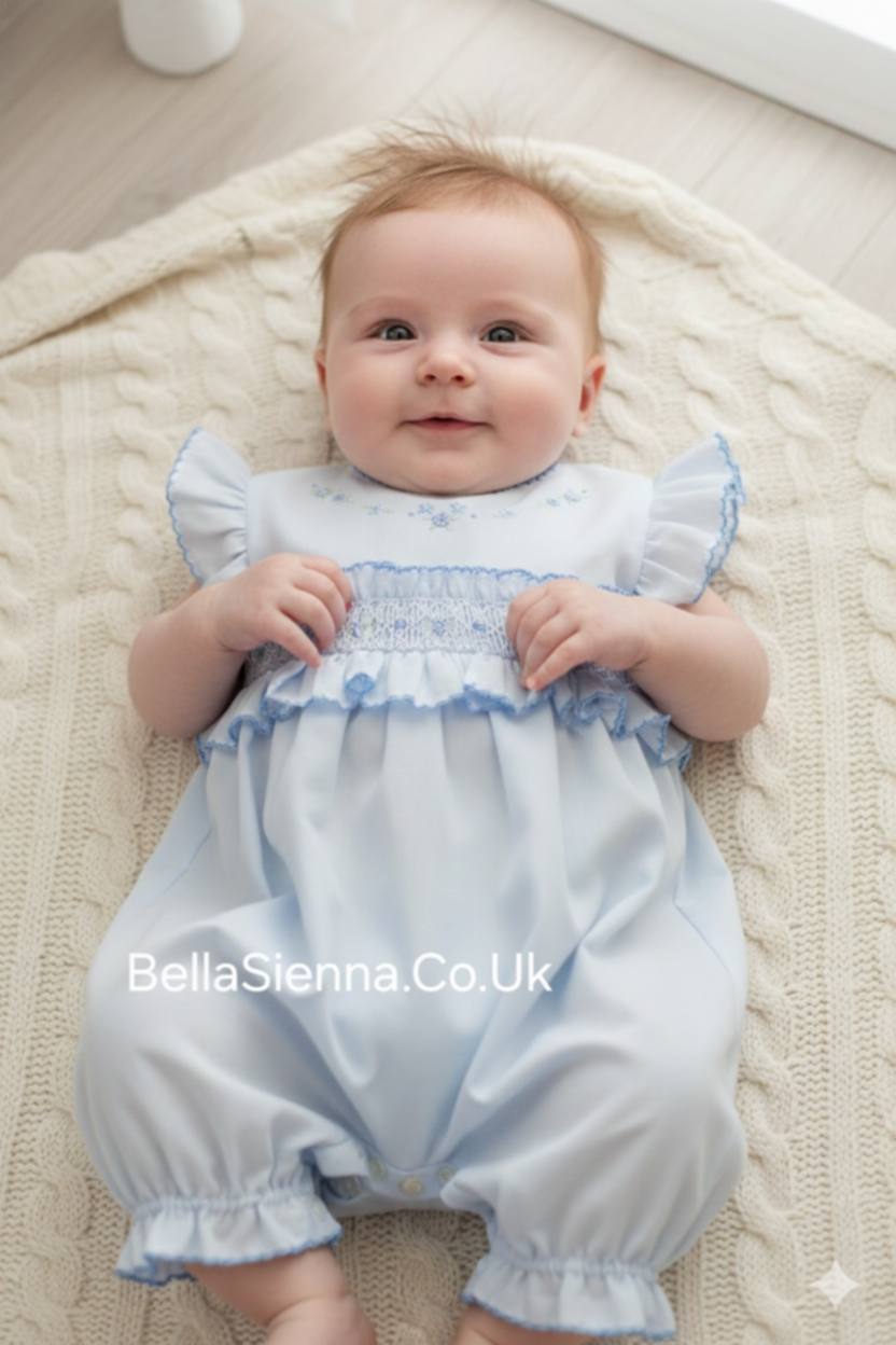 Sarah Louise Blue Bubble Smocked Romper - 012625