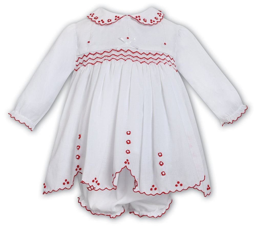 Sarah Louise Girls White And Red Smocked Dress 011661