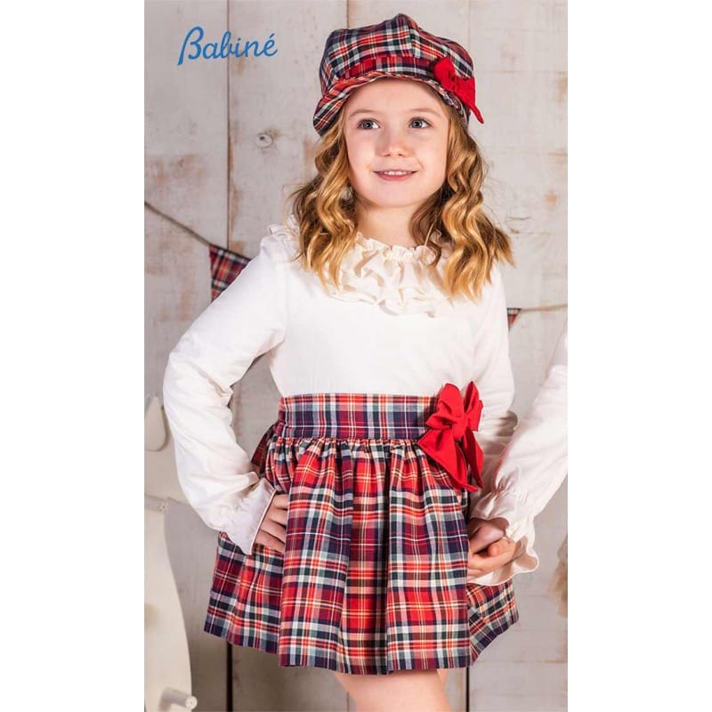 Babine Girls Ivory Blouse & Tartan Skirt Set - 2212039