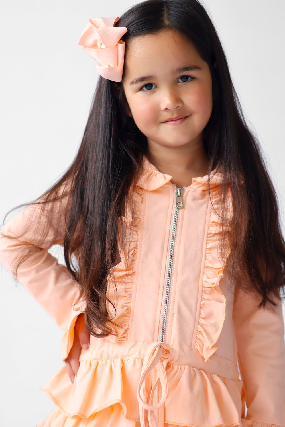 Girls Fern loungewear set is perfect for the pure comfort to keep them warm on them chilly days, this set has layers of frills around the bottom but has a zip through and pull in tie up waist to give it a dressier look. The Fern tracksuit is made from 100% cotton so you are assured of the highest quality and no bobbling!