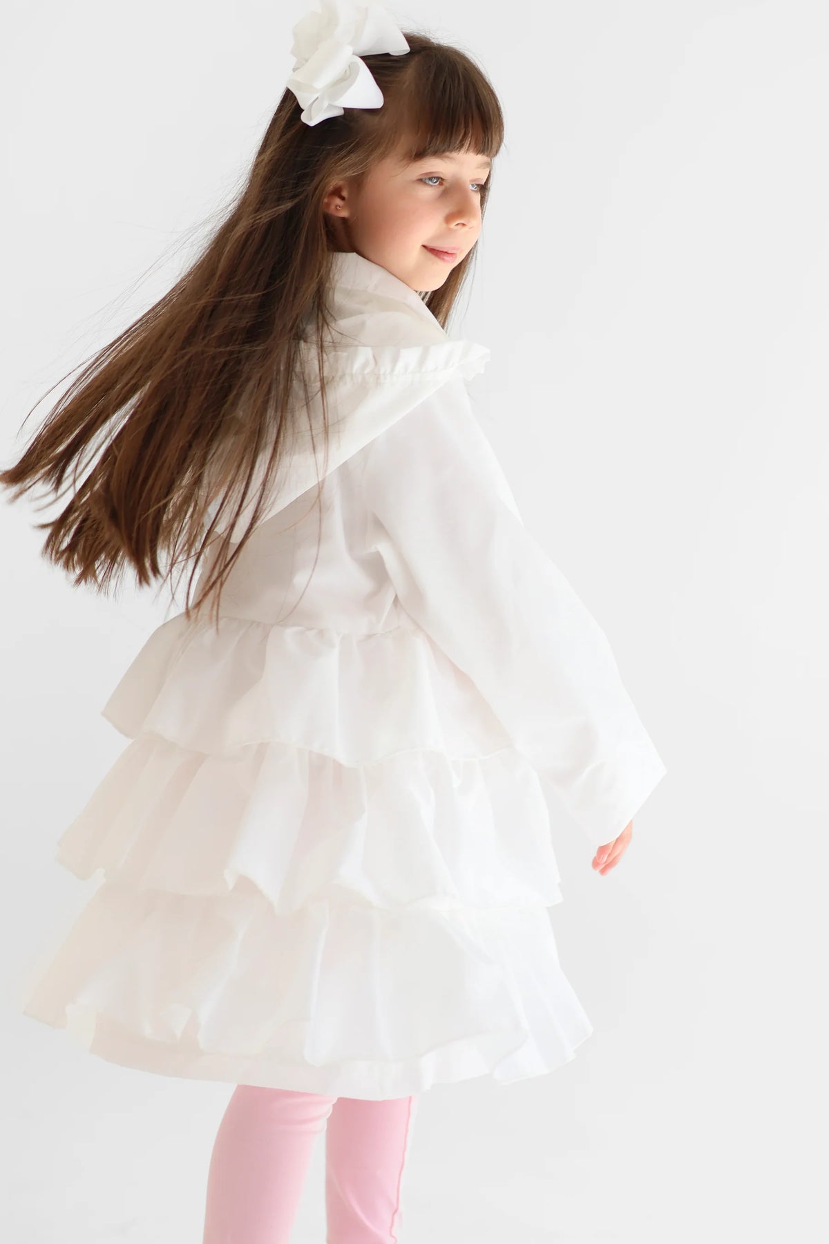 Harris Kids "Serena" Girls Frilly Bow Lightweight Rain Mac Coat - White