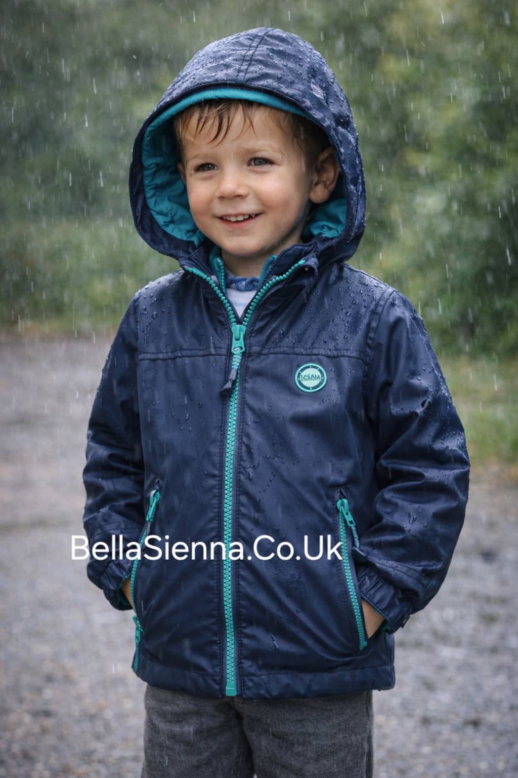 Losan Hooded Jacket in Navy & Green. Its zip fastening ensures a secure fit, while its timeless design, made from high-quality materials, this jacket offers both comfort and durability. Perfect for any occasion.