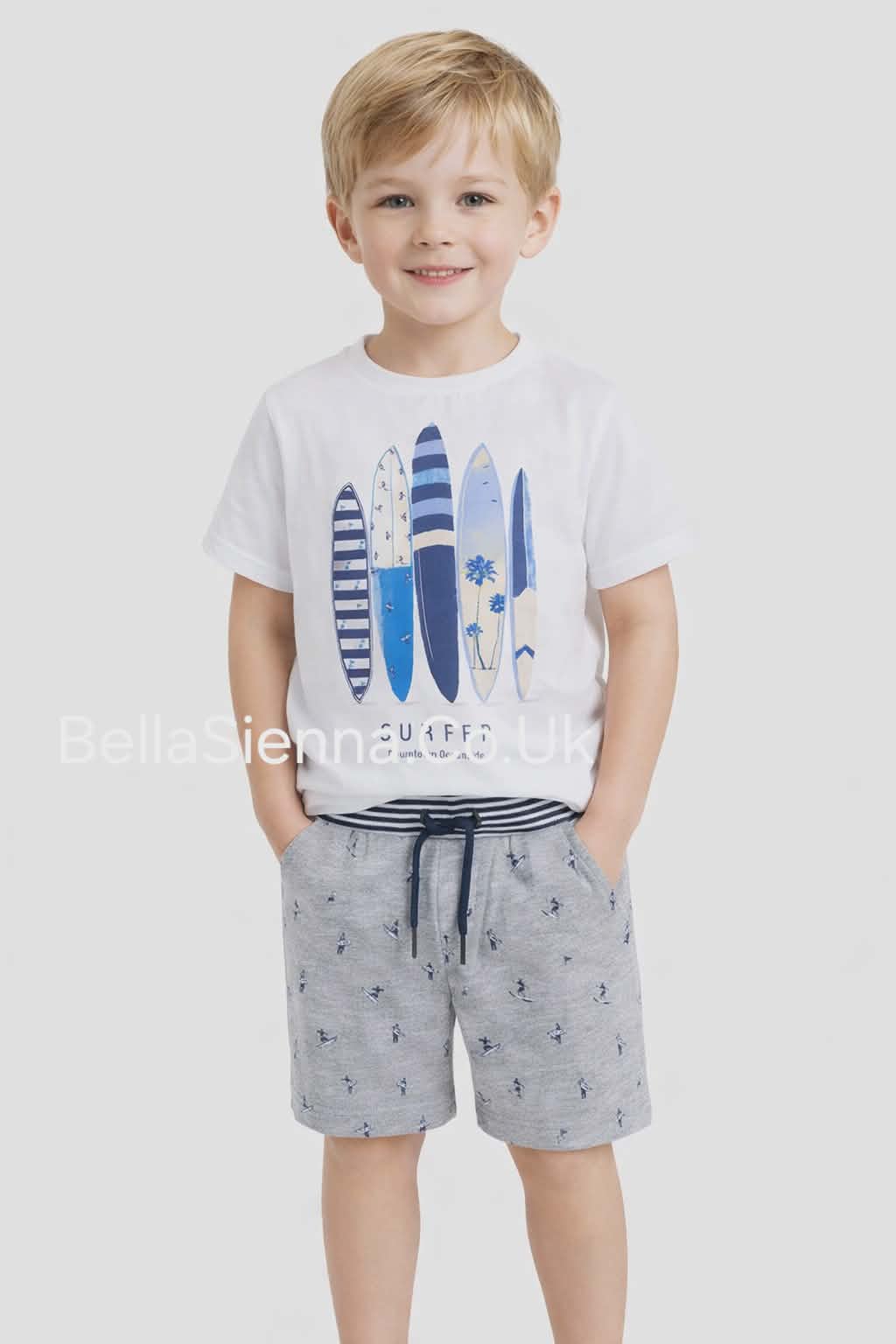 Mayoral Boys Summer Short Set is the perfect choice for warm weather days. It includes a short-sleeved t-shirt with a round neckline and coordinating shorts. Made with lightweight and breathable fabric, this set ensures your boy will look and feel comfortable all summer long.