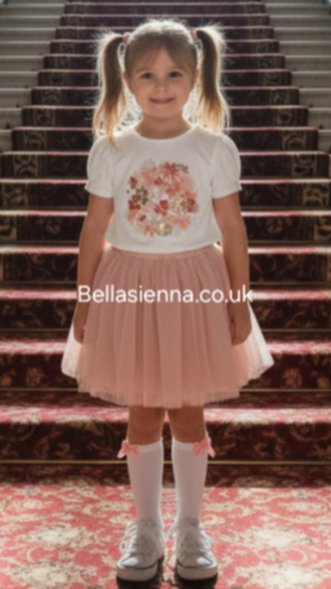 Mayoral Girls Top & Tulle Skirt Set - 3953 - Nude Pink