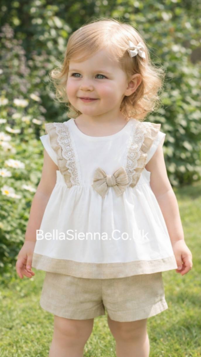 Mayoral Girls Pretty Two Piece Shorts Set With Lace & Bow Detail - 1236