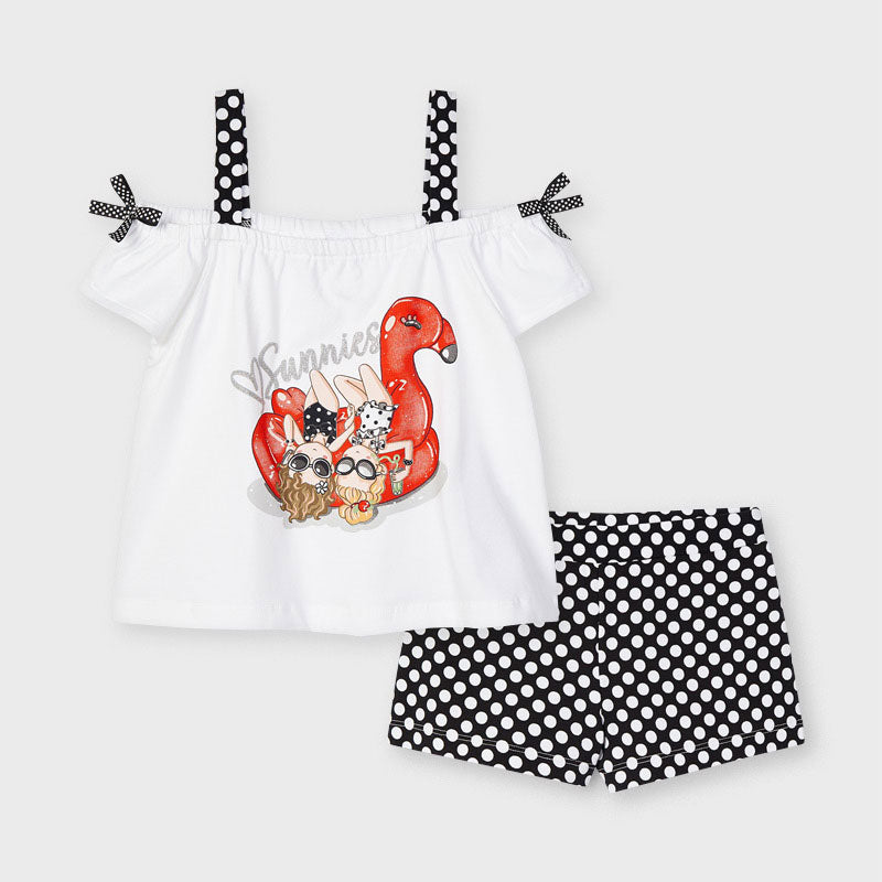 Mayoral Girls Smart White And Navy Blue Skort Set 3042