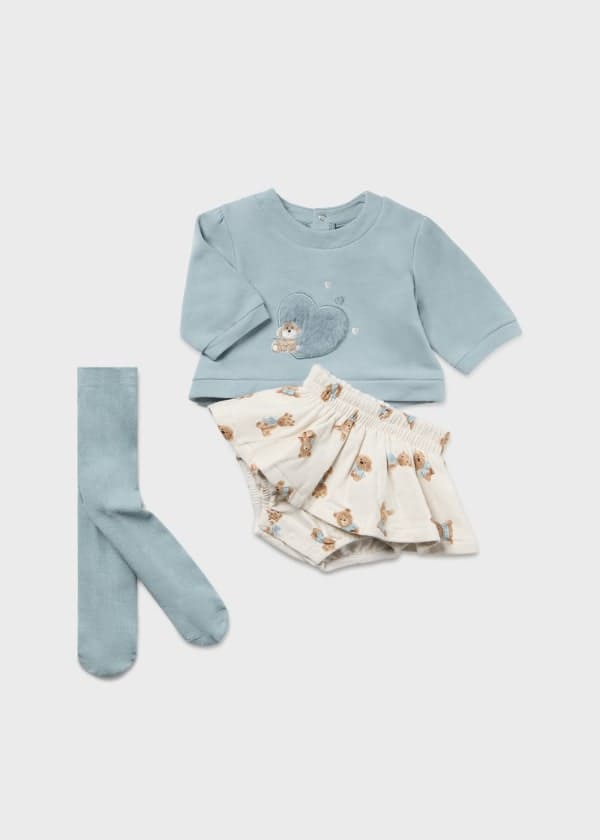 Mayoral Baby Girls Polar Blue Three Piece Set - Jumper, Skirt & Tights - 2816