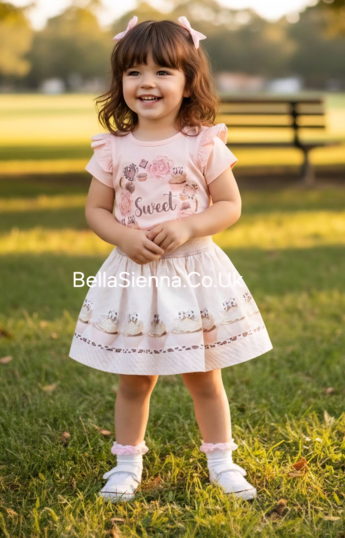 Peachy Pink "Sweet" Skirt & Top Set With Pearl & Sparkle Detail -3609