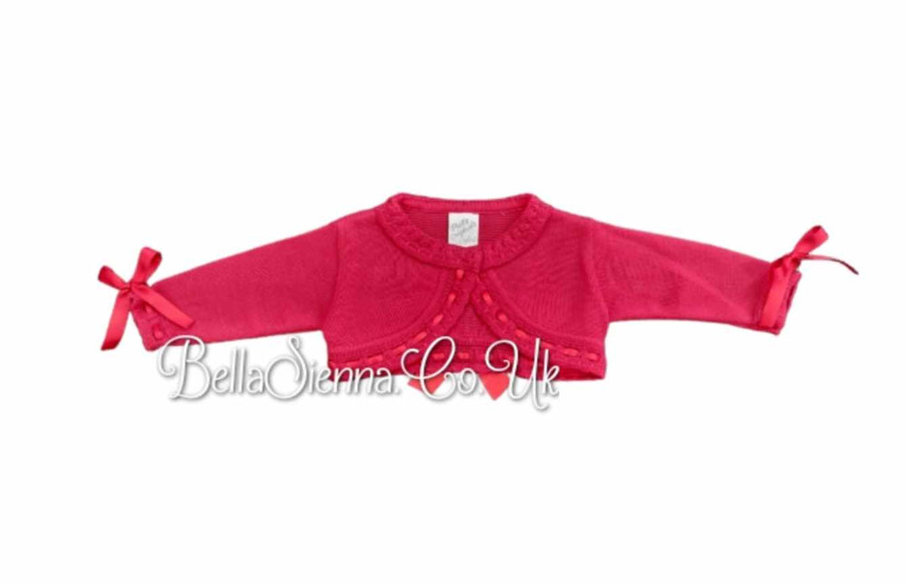 Pretty Originals Girls Red Cotton Cropped Bow Cardigan