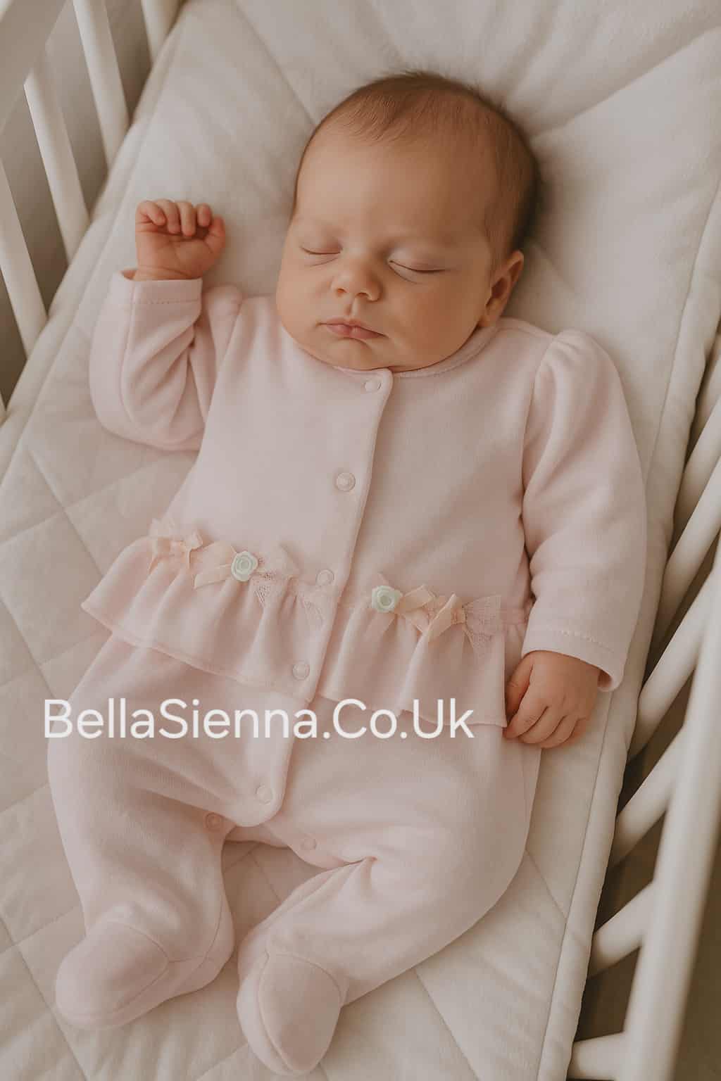 Blue Baby Pink Velour Sleepsuit With Bows & Organza Flowers Babygrow - TT0160
