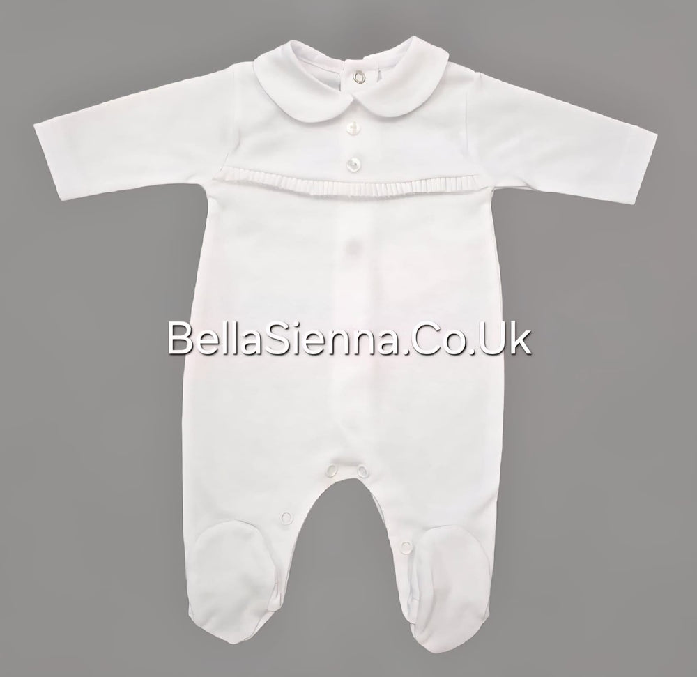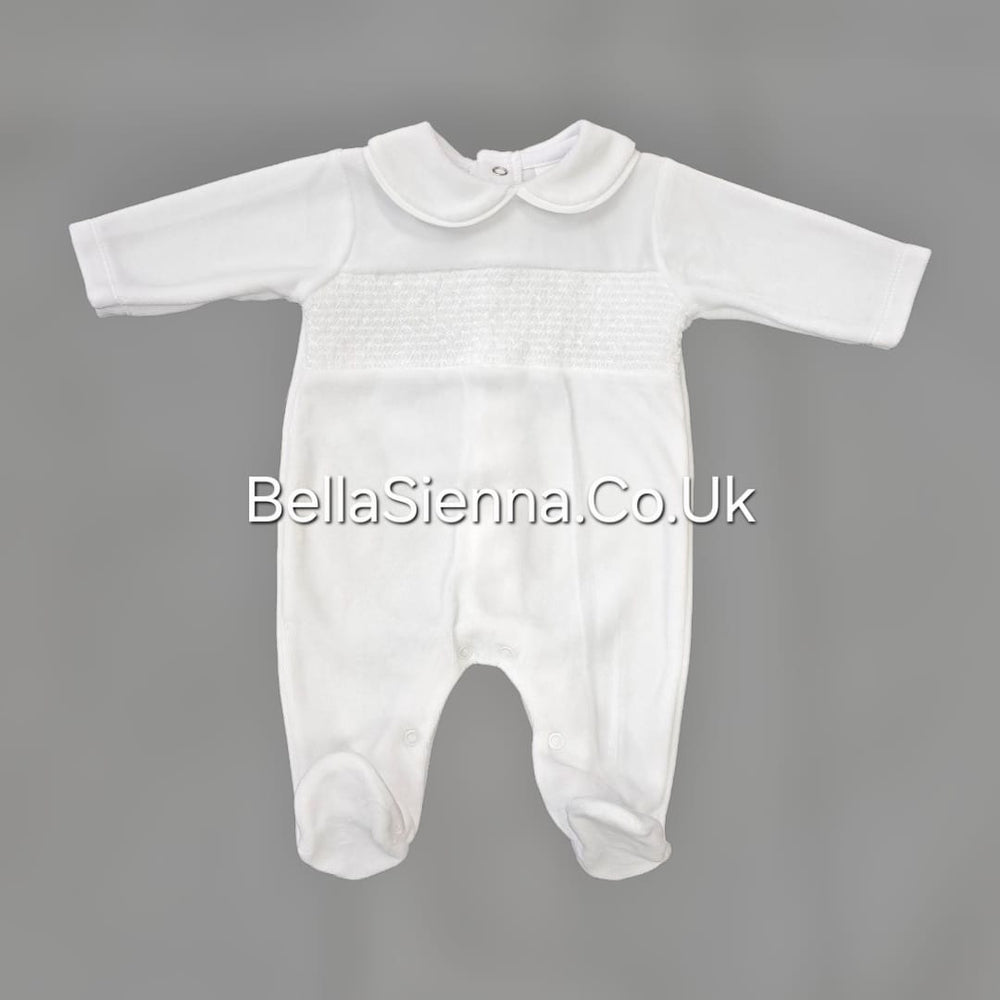 Unisex White Velour Smocked All In One Babygrow - SG68-V