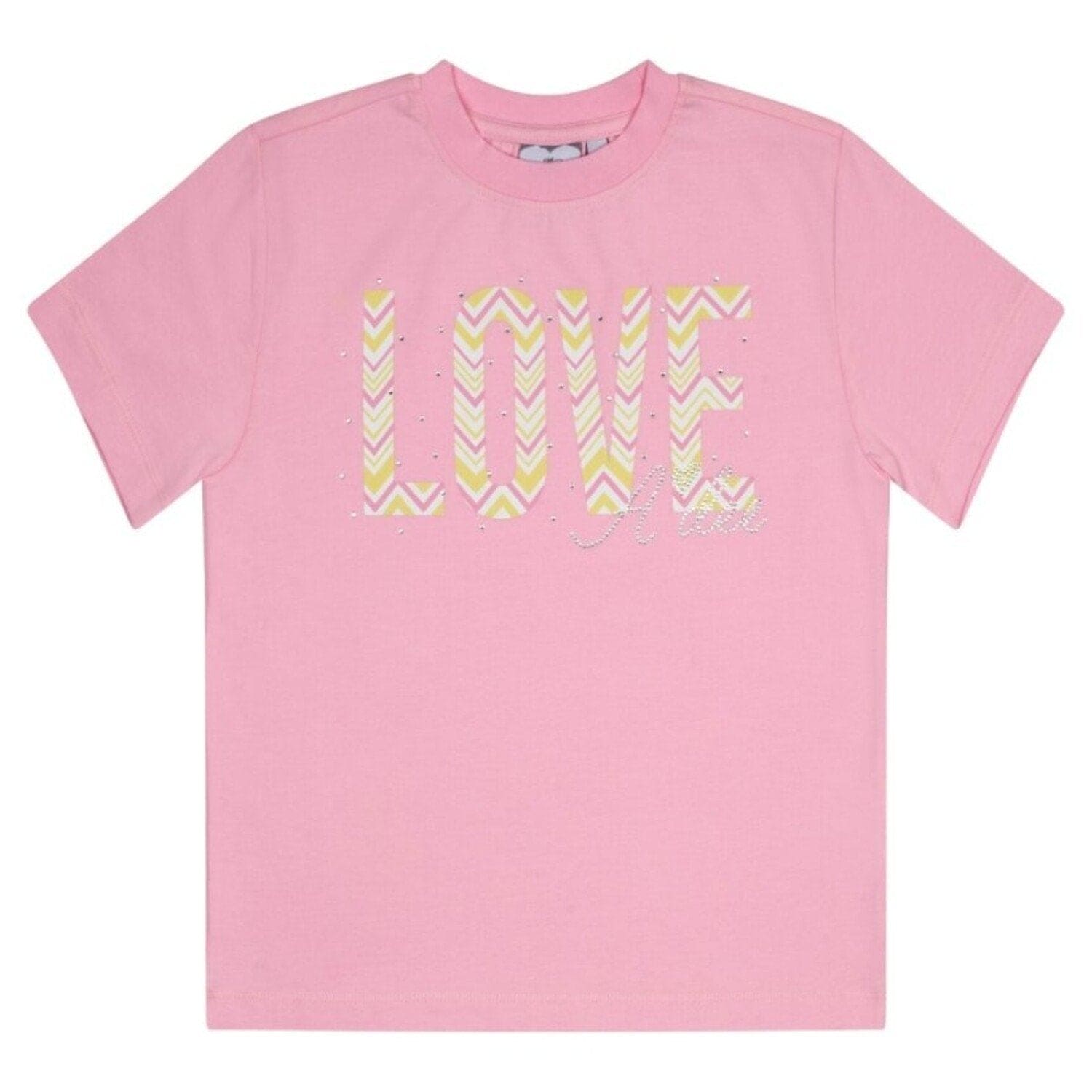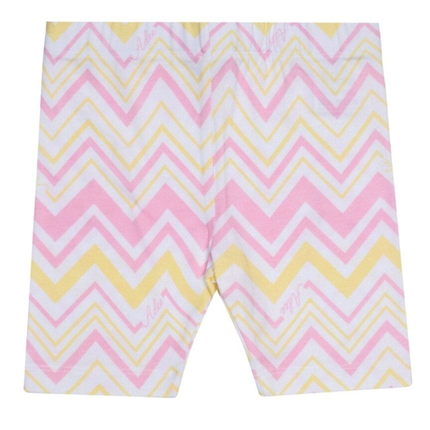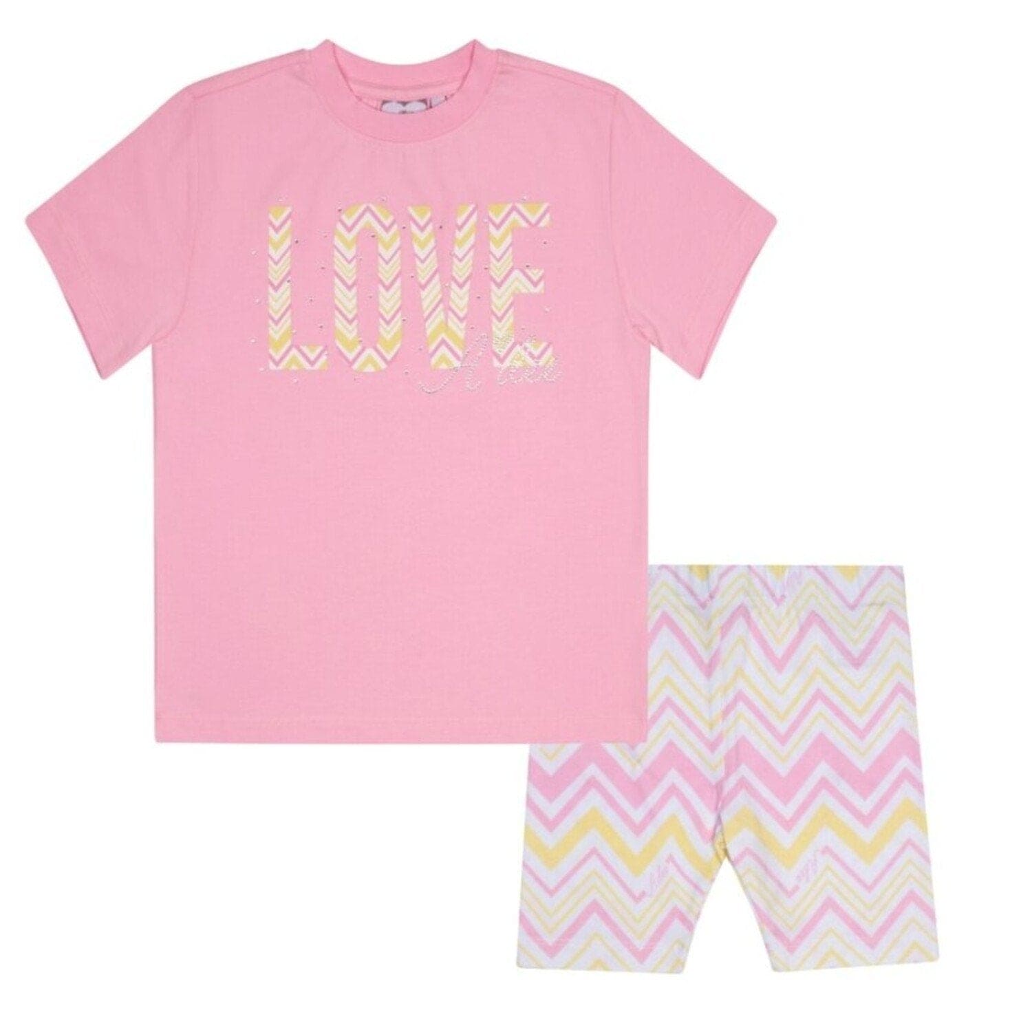 A Dee girls two-piece chevron print cycling short set with oversized t shirt with printed and diamante chevron artwork on front.