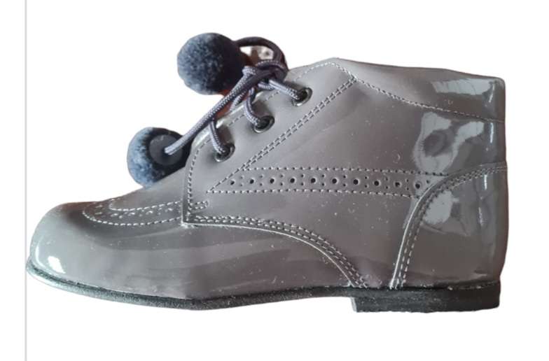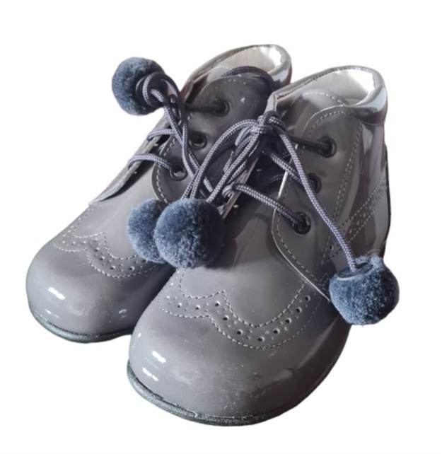 Andanines Boys Grey Leather Patent Boots F91846