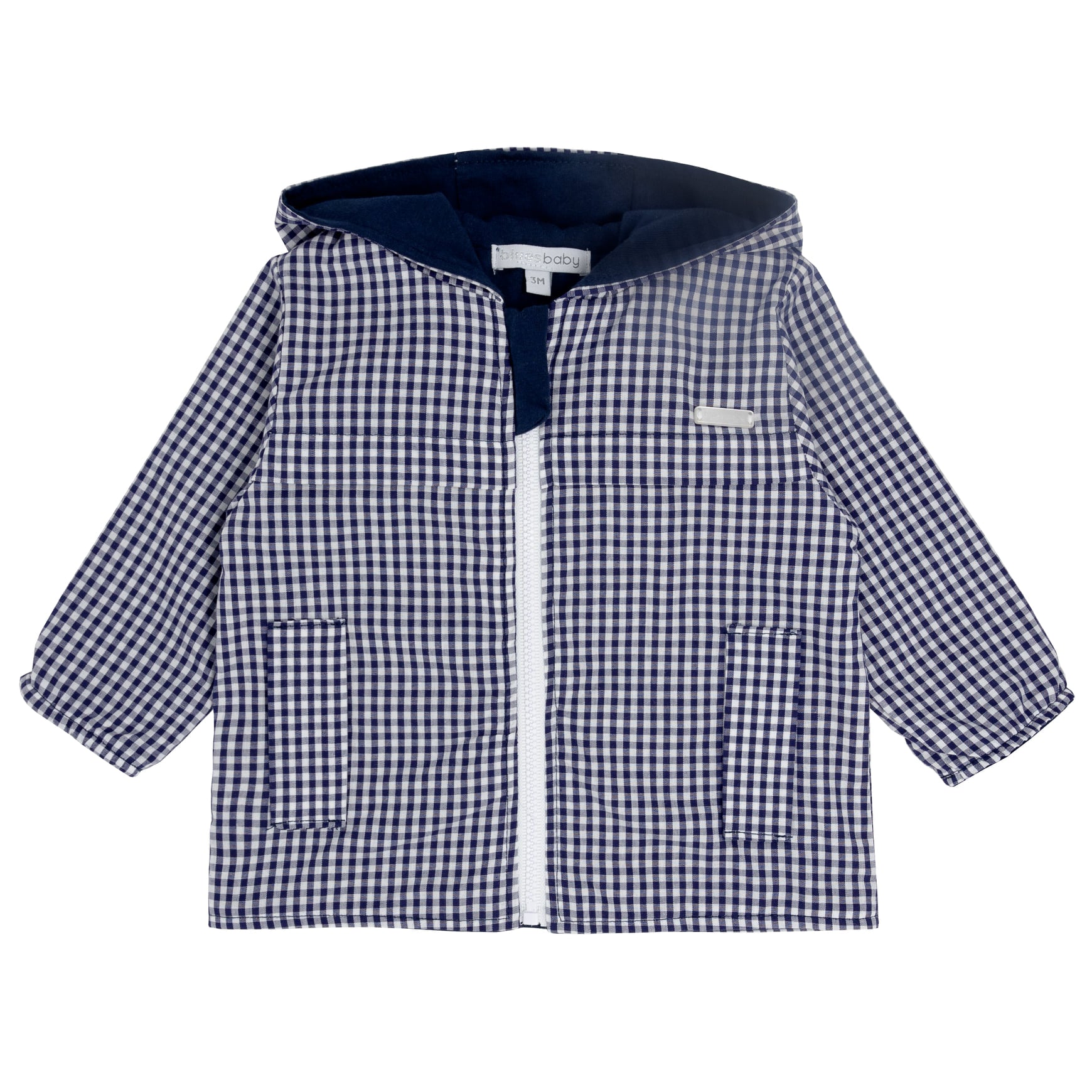 Blues Baby Navy & White Gingham Hooded Jacket - BB0336