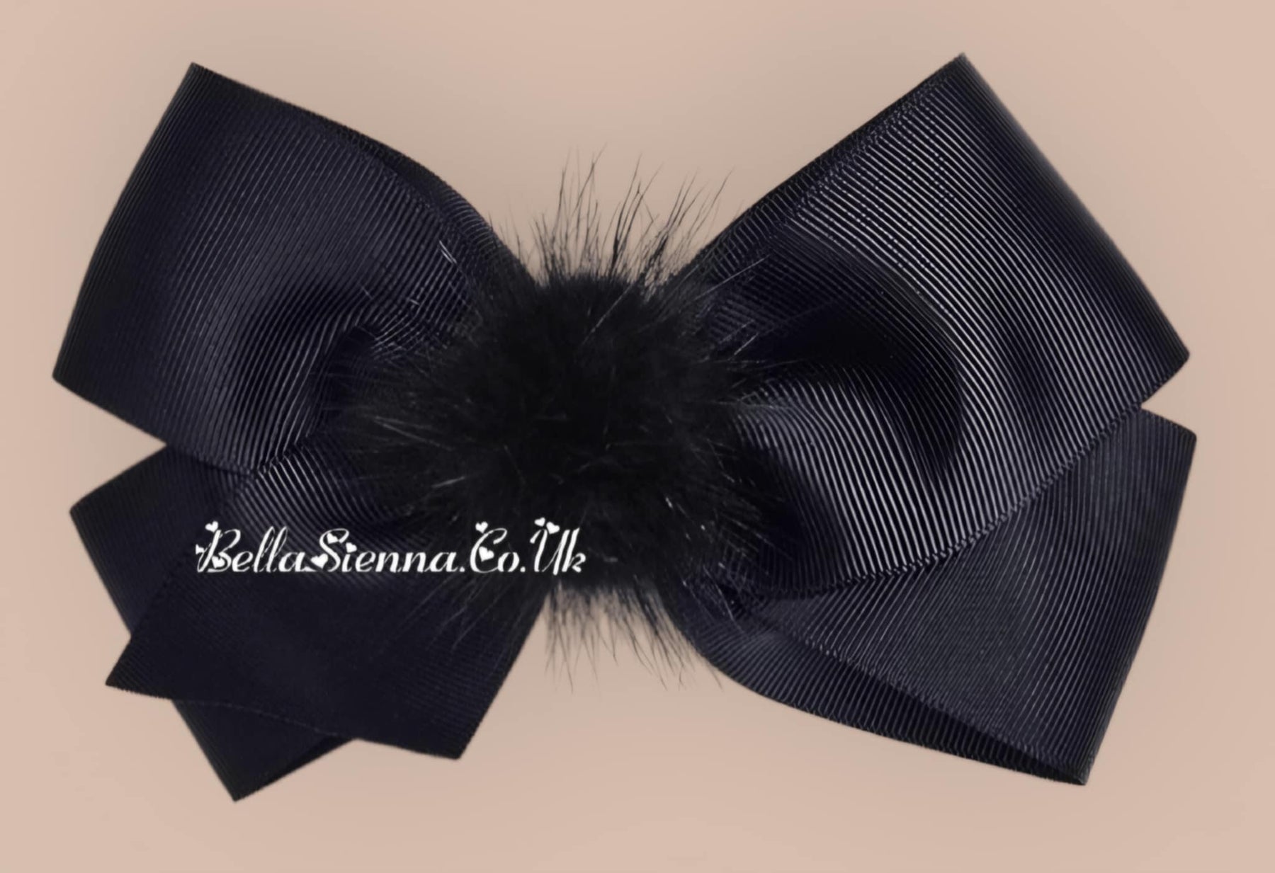 Bowtique London 4 Inch Black Grosgrain Medium Size Hair Bow With Fur Pom