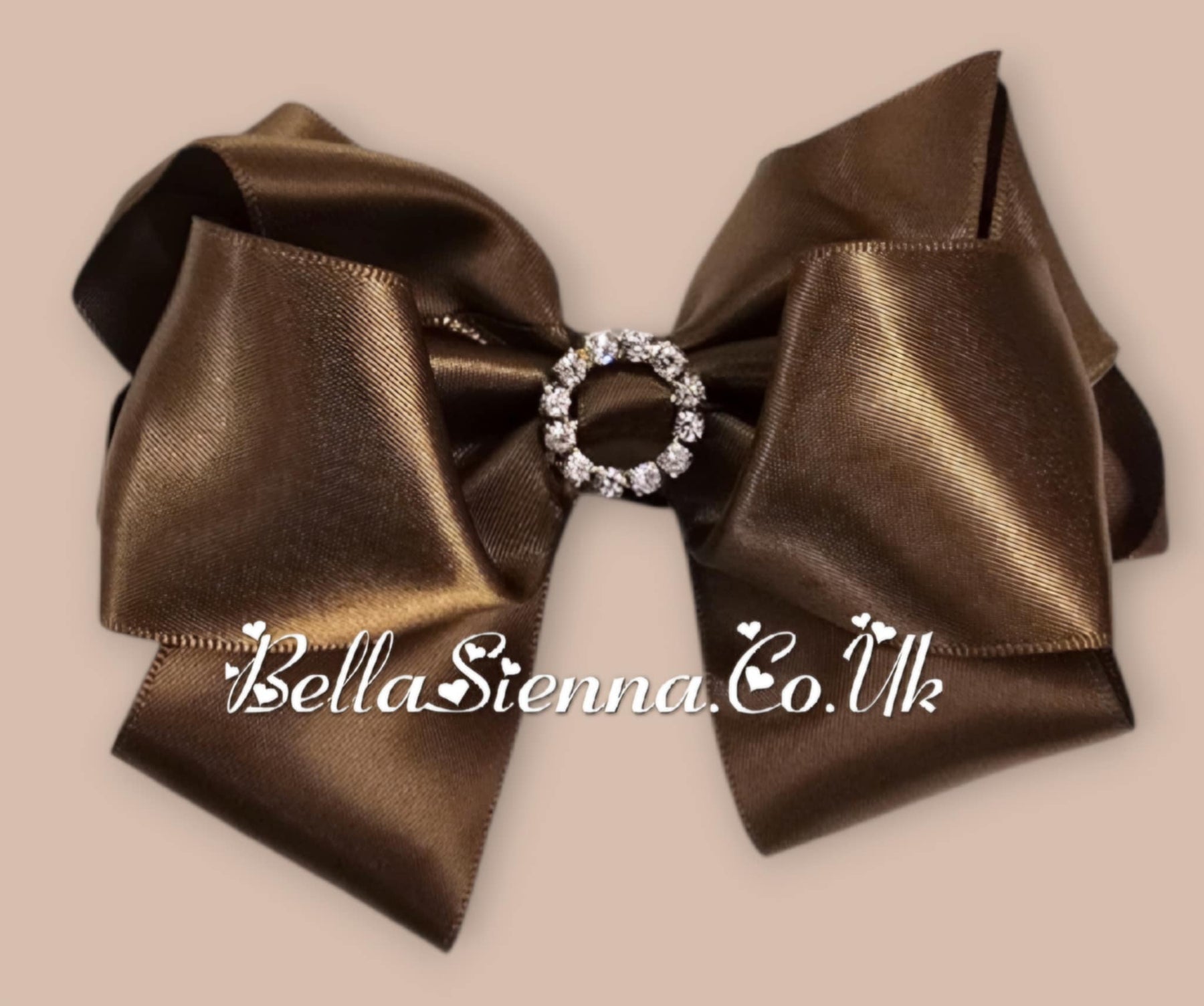 Bowtique London 4 Inch Brown Satin Medium Size Hair Bow With Diamanté Centre