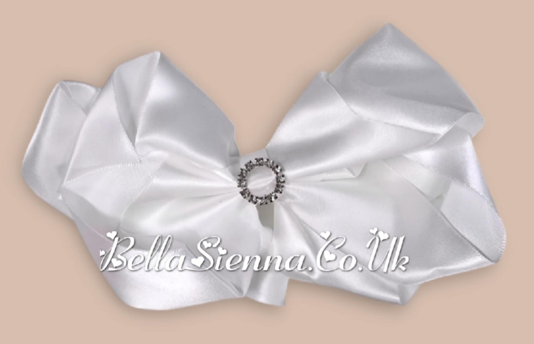 Bowtique London 6 Inch White Grosgrain Large Hair Bow With Diamanté Centre