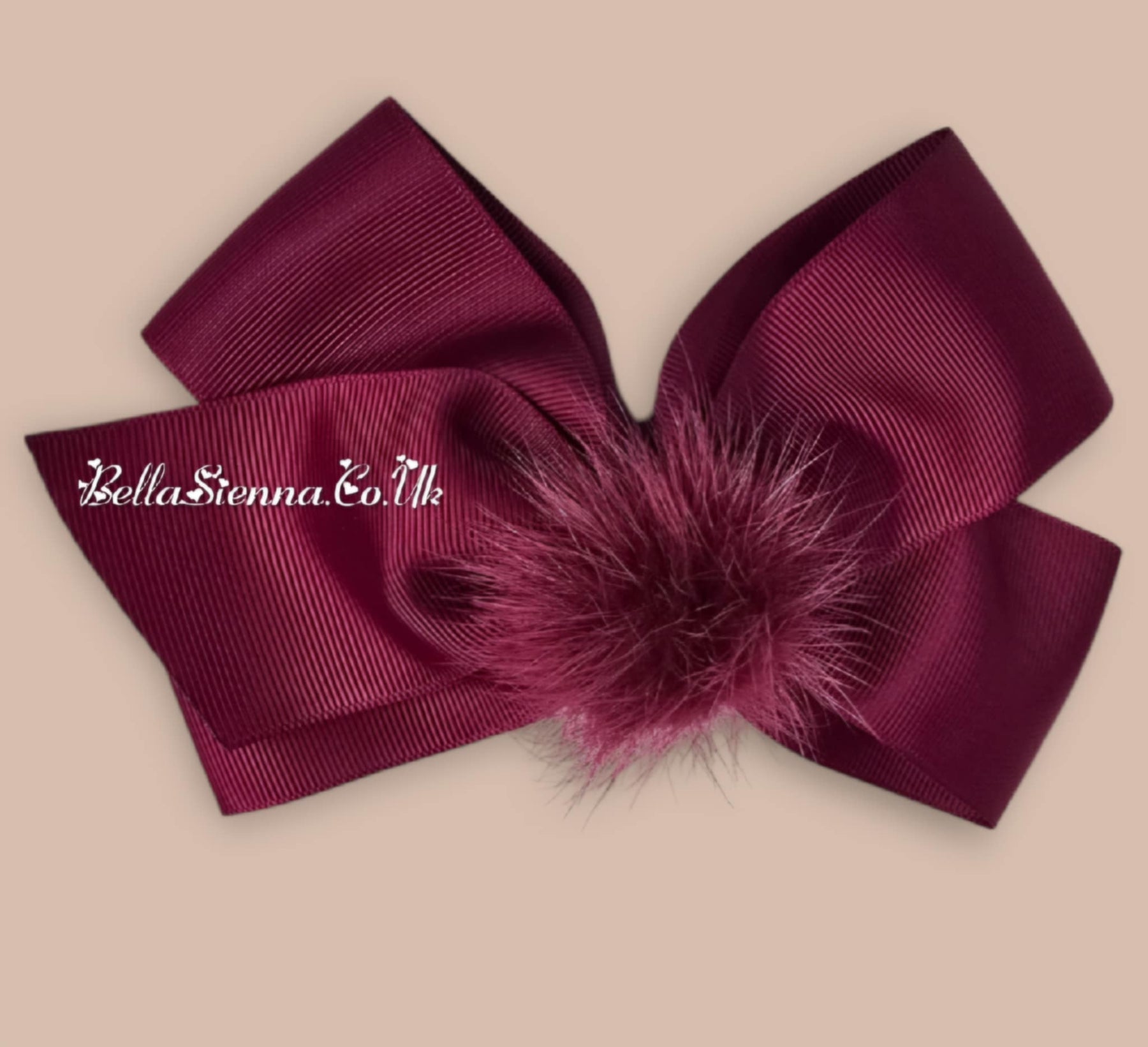 Bowtique London 6 Inch Burgundy Grosgrain Large Hair Bow With Fur Pom